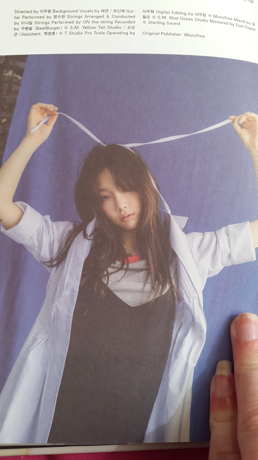 As you can tell I have both version, my favourite version is the I Got Love version so if I had to help someone choose which version they should get I would say the I Got Love version if you can't afford both, but I guess it depends on your preference of TaeYeon, where there are obviously stunning pictures of her in the Fine version, I think it's a side of her that SM always shows where as the I Got Love version is showing a side that she's never really portrayed and I love that side of TaeYeon. My only disappointment for this album is her name isn't listed on any of the tracks which would have made me love the album that much more but knowing that she'll have picked what songs she wanted to place on the album lessens that disappointment. TaeYeon to me is the type of singer that no matter the genre of song she can pull it off as to me she has a very versatile voice. Many fans weren't too impressed with I Got Love but for me I think it's the best song and my most favourite song of hers, to me it sounds like it would be a perfect fit for the Fifty Shades soundtracks. TaeYeon said she found it physically and mentally demanding when she was recording Fine, showing how much pressure she was under, I think it's obvious that when it comes to her music TaeYeon is a perfectionist and even though she has many fans and other idols that look up to her and admire her, she has quite a lot of haters too. There is a part in the Fine M/V where the director yells cut as she seems to break down, many fans think this wasn't scripted and was left in purposely, I personally am one of those fans that think it was real and is TaeYeon letting her cracks show to not only her fans but to her haters too, reminding them that she may be an idol but she's still human. I fell in love with this album on the first listen but it's impossible not to, if I could wake up tomorrow with someones vocal talent it would be TaeYeon's, I found it really difficult to pick only a few songs, so I will be doing a My Voice Deluxe Edition post once I have it to share the rest of these amazing songs. I think this album proves that TaeYeon still has a long career ahead of her in Girls Generation and as a soloist and I can't wait to see what else is to come from her.
