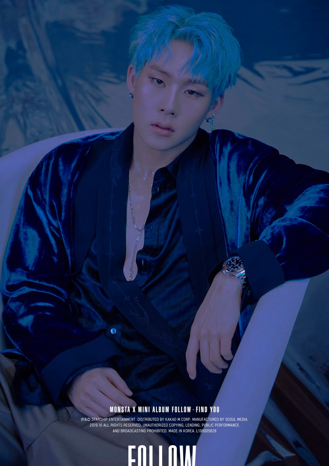 Follow - Find You is MONSTA X's 7th mini album, on the 1st of October 2019, the groups schedule poster was released, with the track list being released on the 7th of October, on the 10th of October, the M/V teaser was released for Find You. On the 14th of October, the first set of teaser images were due to be released but due to a tragic event, to show respect, the group delayed their scheduled releases. On the 18th of October, the Follow - Photo 1 was released.